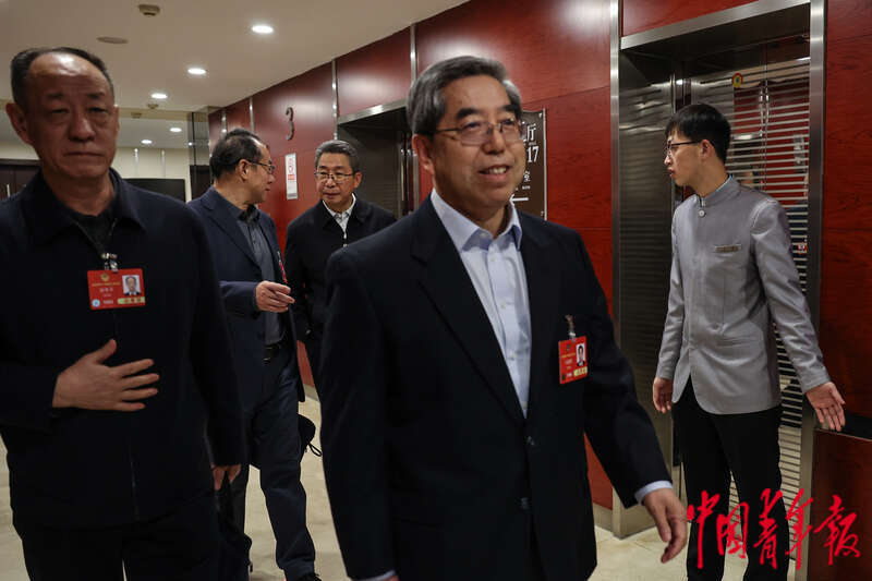 3月5日,北京铁道大厦,全国政协十四届三次会议经济界别小组会议开始前,委员们走向会场。中青报·中青网记者 曲俊燕/摄