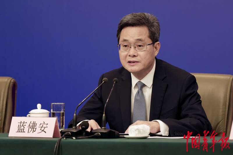 3月6日下午,北京,梅地亚中心新闻发布厅,十四届全国人大三次会议经济主题记者会上,财政部部长蓝佛安回答记者提问。蓝佛安介绍,今年中央对地方转移支付安排10.34万亿元,同口径增长8.4%,重点是增加一般性转移支付,增强地方政府财力,有效提高地方财政保障能力。中青报·中青网记者 李隽辉/摄