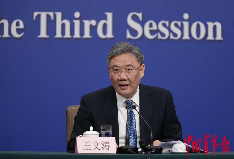 3月6日下午,北京,梅地亚中心新闻发布厅,十四届全国人大三次会议经济主题记者会上,商务部部长王文涛回答记者提问。王文涛表示,2025年,要把扩消费和惠民生结合起来,统筹商品消费和服务消费,推出更多务实管用举措。其中,以旧换新“加力扩围、惠民升级”,扩大换新补贴的品类范围。中青报·中青网记者 李隽辉/摄
