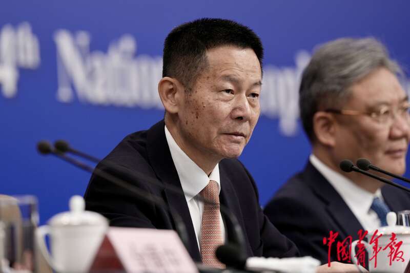 3月6日下午,北京,梅地亚中心新闻发布厅,十四届全国人大三次会议经济主题记者会上,中国证券监督管理委员会主席吴清回答记者提问。吴清表示,要逐项打通中长期资金入市卡点堵点,多渠道增强战略性力量储备。中青报·中青网记者 李隽辉/摄