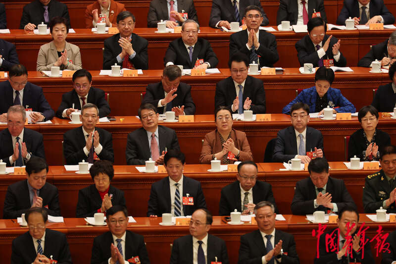 3月9日上午,北京人民大会堂,全国政协十四届三次会议举行第三次全体会议,委员进行大会发言,参会委员鼓掌。中青报·中青网记者 曲俊燕/摄