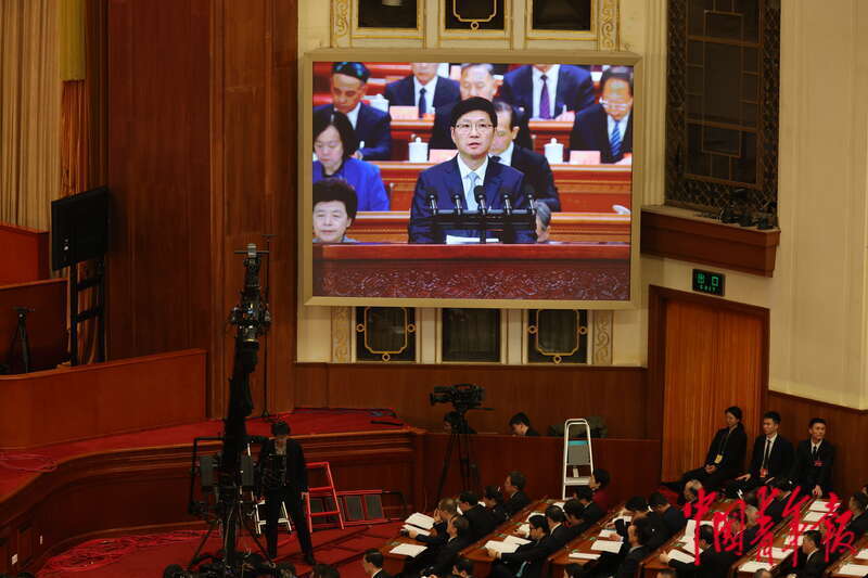 3月9日上午,北京人民大会堂,全国政协十四届三次会议第三次全体会议上,全国政协委员、中国青年报社党委书记张坤代表共青团和青联界作题为《赓续中华文脉 更好担当起新的文化使命》的发言。中青报·中青网记者 曲俊燕/摄