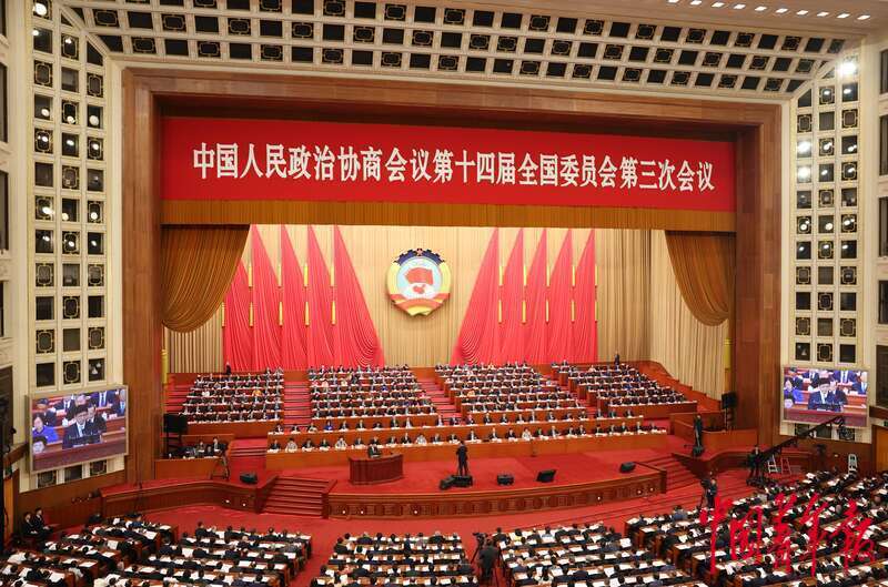 3月9日上午,北京人民大会堂,全国政协十四届三次会议举行第三次全体会议,委员进行大会发言。中青报·中青网记者 曲俊燕/摄