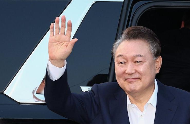 从首尔拘留所离开,尹锡悦抵达总统官邸 下车与支持者握手