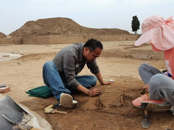2021年,高江涛在宫殿区发掘夯土中小墓。受访者供图