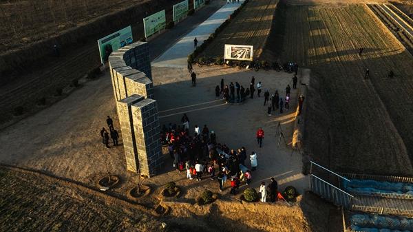 2024年3月20日,陶寺遗址古观象台,气象和摄影爱好者观看“太阳-观测缝-观测点”之间三点一线的景观。视觉中国供图