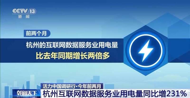 杭州能源大数据评价与应用研究中心数据研究专员 王妍艳:现在,杭州的用电量中,互联网相关行业是用电量增长的主要贡献者。前两个月,贡献度达50.03%,为杭州经济的高质量发展提供了有力支撑。
