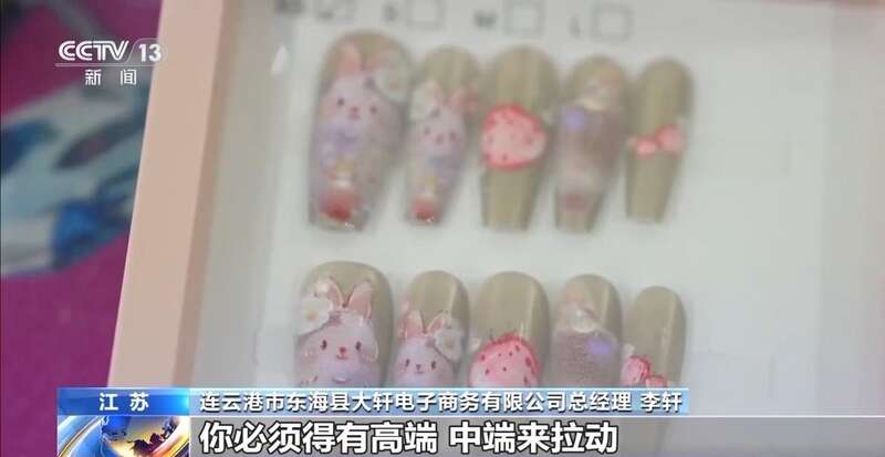 连云港市东海县跨境电商从业者 张蕾蕾:我们之前做一些引流的低价款式,但是随着低价市场逐渐饱和,我们现在开始走高端市场。客户满足了基本的美甲需求之后,就会想追求更高质量的产品。