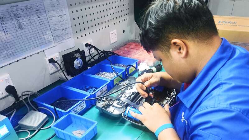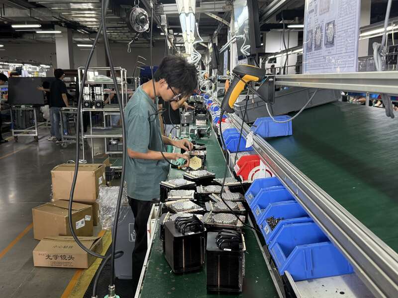 6月26日,广东省深圳市,在深圳市联合飞机科技有限公司的生产车间,工作人员们正手拿零部件合力组装无人机产品。中青报·中青网记者 魏婉/摄