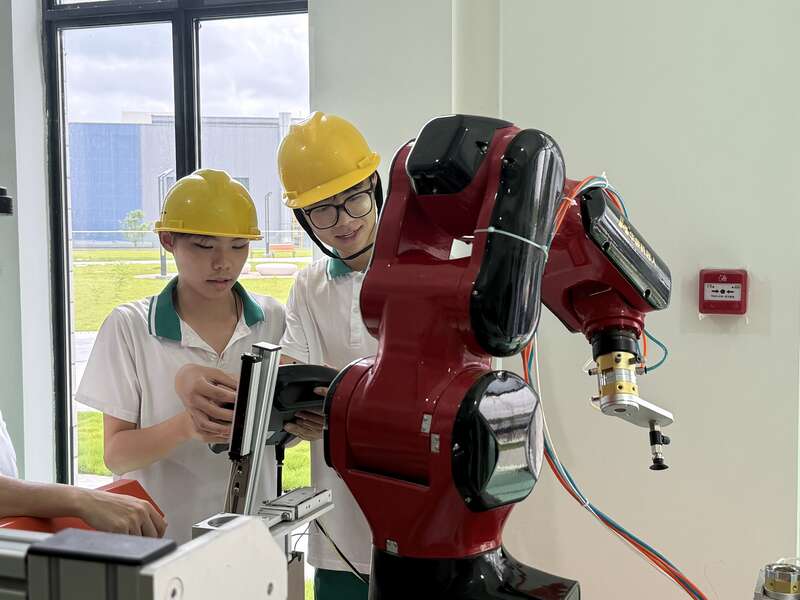 6月28日,广东省佛山市,在佛山市华数智造公共实训中心,佛山华材职业技术学校中职一年级工业机器人专业的学生正在学习工业机器人的基本操作。中青报·中青网见习记者 刘佳佳/摄