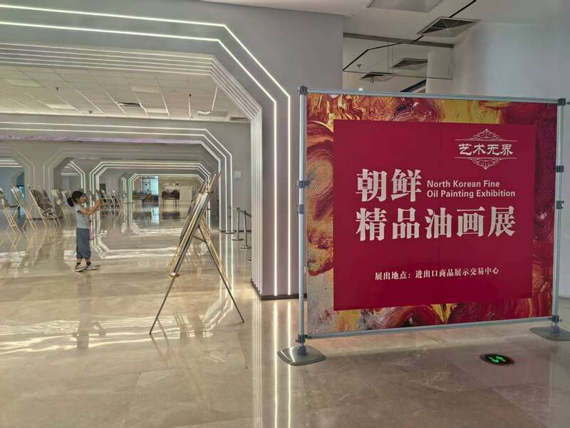 中国青年报客户端讯(中青报·中青网记者 郭剑 韩飏)44幅色彩艳丽的油画作品分两列排开,一幅狮虎怡然并卧林间画作标价1800元,一幅村舍小路行人漫步画作标价3600元……7月14日,记者参加“活力中国调研行”主题采访时来到长春市进出口商品展示交易中心一层,走进展厅,北上长春的“朝鲜精品油画展”特别打眼,让宽敞明亮的大厅显出勃勃生机。