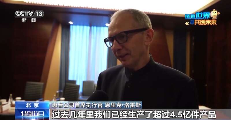 惠普公司首席执行官 恩里克•洛雷斯:我们在中国有数百家合作伙伴和协作者。过去几年里,我们已经生产了超过4.5亿件产品,这是一个非常可观的数字,也意味着我们需要许多合作伙伴的协助。