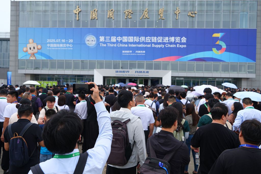 2025年7月16日,北京,第三届中国国际供应链博览会开幕。中国国际供应链促进博览会(以下简称“链博会”)作为全球首个以供应链为主题的国家级展会,是全球共享的国际公共产品。第三届链博会定于2025年7月16日至20日在北京举办,设置先进制造链、清洁能源链、智能汽车链、数字科技链、健康生活链、绿色农业链等6大链条和供应链服务展区。