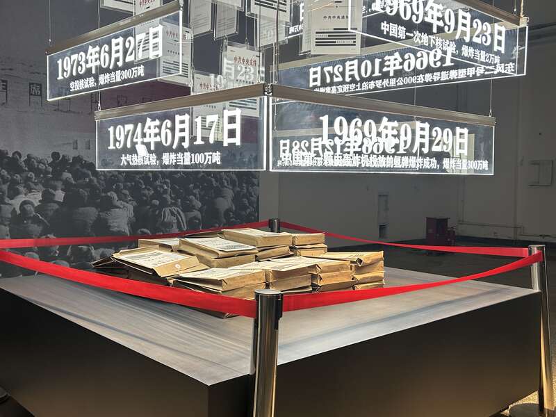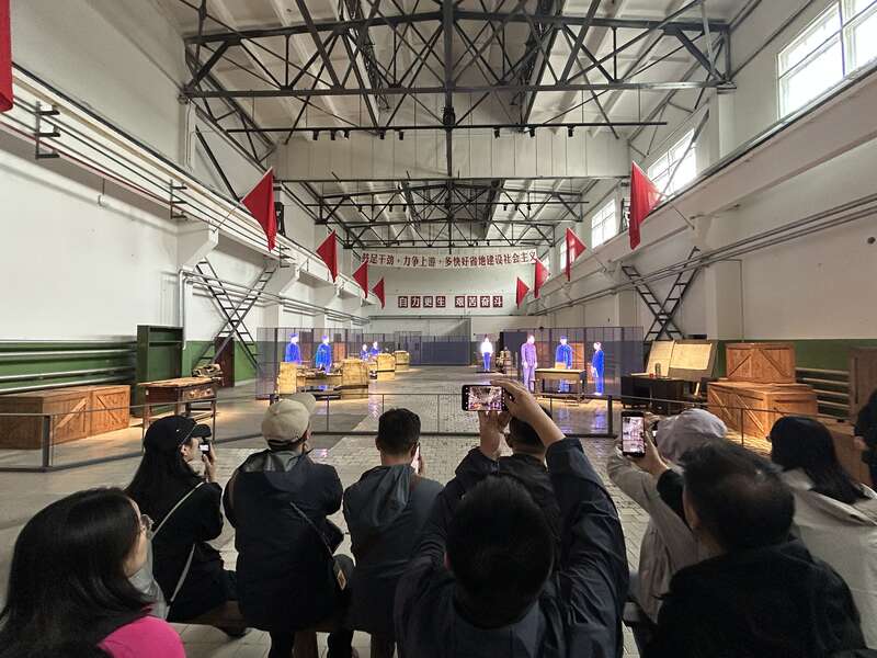 记者在221基地旧址一分厂的“102车间”看到,不少老物件又回到了这里,它们来自中国工程物理研究院、中核集团等单位。同时,车间还设置沉浸式影院,通过多块电子大屏密集中呈现当年的影像图片、人物事件,带领大家“穿越”回上世纪五六十年代。