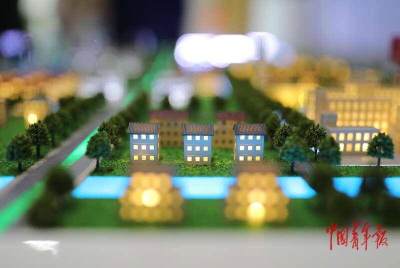 8月4日,浙江省杭州市萧山区瓜沥镇梅林村,沙盘一角展示着梅林村被低碳清洁能源“点亮”的万家灯火。中青报·中青网记者 孔斯琪/摄