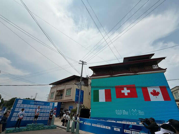 成都世运会徒步定向男子中距离颁奖典礼。