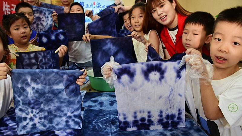江苏镇江:小朋友体验扎染制作技艺 感受非遗魅力