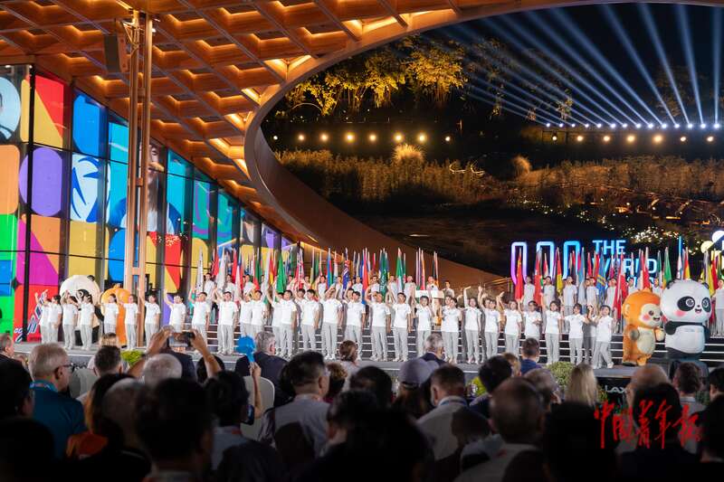 8月17日,成都世博园,成都世运会闭幕式,主火炬熄灭仪式上,童声小合唱《友谊地久天长》。当日,2025年第12届世界运动会闭幕式在成都世博园举行。本届世运会是中国西部继成都大运会之后举办的又一大型国际综合性赛事。在过去的11天里,来自116个国家和地区的近4000名运动员,激情飞扬、追逐梦想,交流分享、增进理解,共同点燃超越自我、团结友谊的体育荣耀之光。汪龙华/摄
