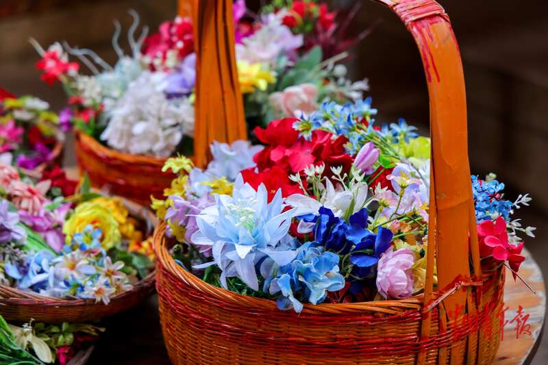 8月18日,福建省泉州市蟳埔民俗文化村,一家簪花店内摆放着各式各样的簪花造型。中青报·中青网见习记者 陈思阳/摄
