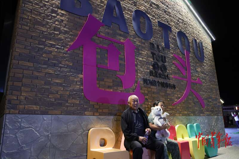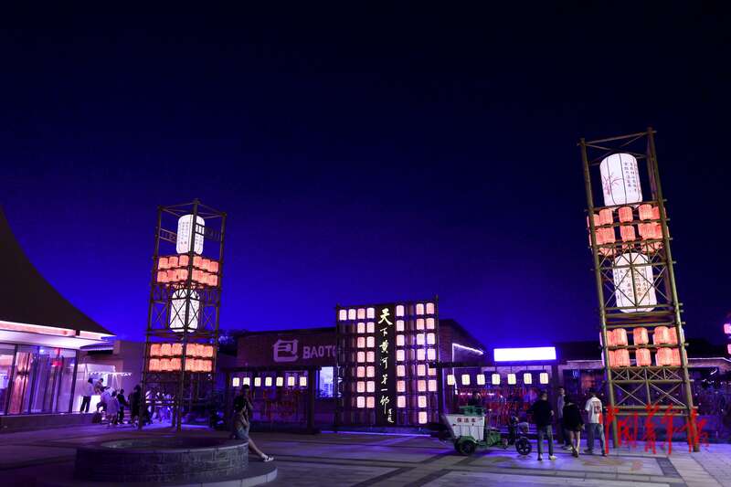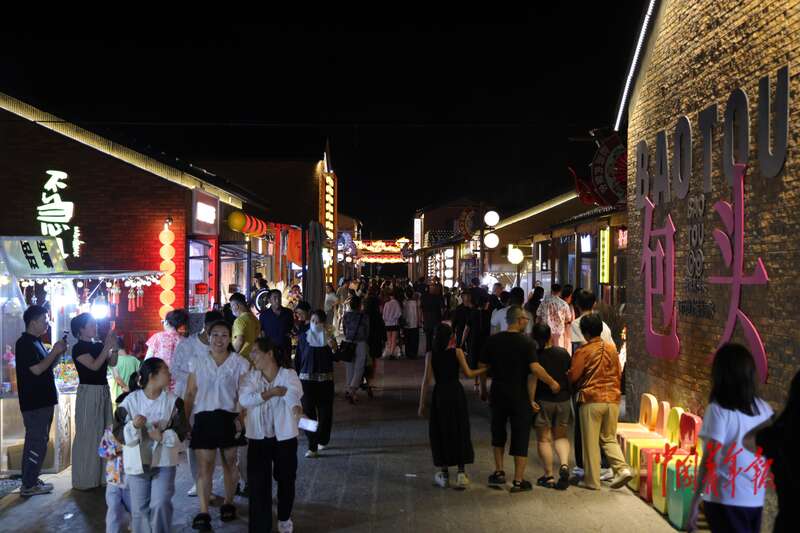 7月29日,内蒙古包头市“天下黄河第一村”,商业街区将黄河沿线的各地文化融入其中,随处可见高颜值打卡点。中青报·中青网见习记者 陈思阳/摄