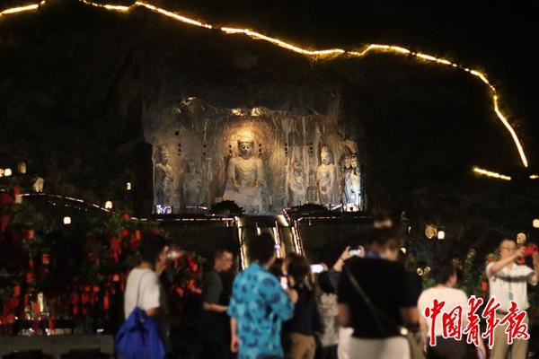 龙门石窟研究院党委书记余杰说,龙门石窟正在构建5G数字化综合管理平台,实现管理、调度、旅游服务、客流监测、智慧导览“一张皮”管控。在观众需求方面,通过遮阳棚、热水供应等细节入手,提升其满意度和体验感。同时,龙门石窟连续多年推出了“夜游龙门”活动,人们可以打卡月色下的石窟。
