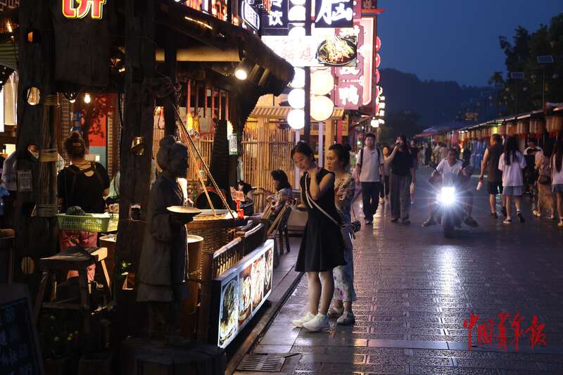 9月2日,四川省乐山市市中区苏稽古镇一条美食街上,游客在选购小吃。中青报·中青网记者 王鑫昕 刘胤衡 摄影报道
