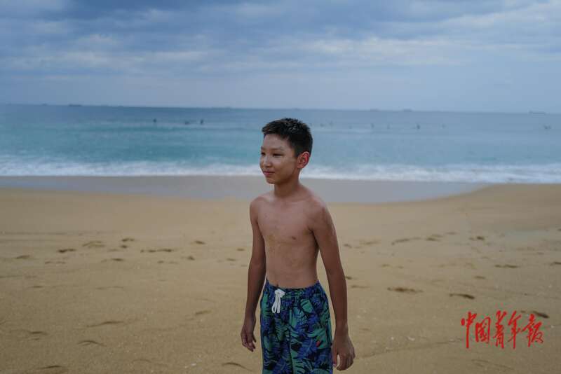 9月24日,海南省万宁市,一名从外省来的小朋友在海边集训冲浪。他来这里已经一个多月了。中青报·中青网记者 赵迪/摄