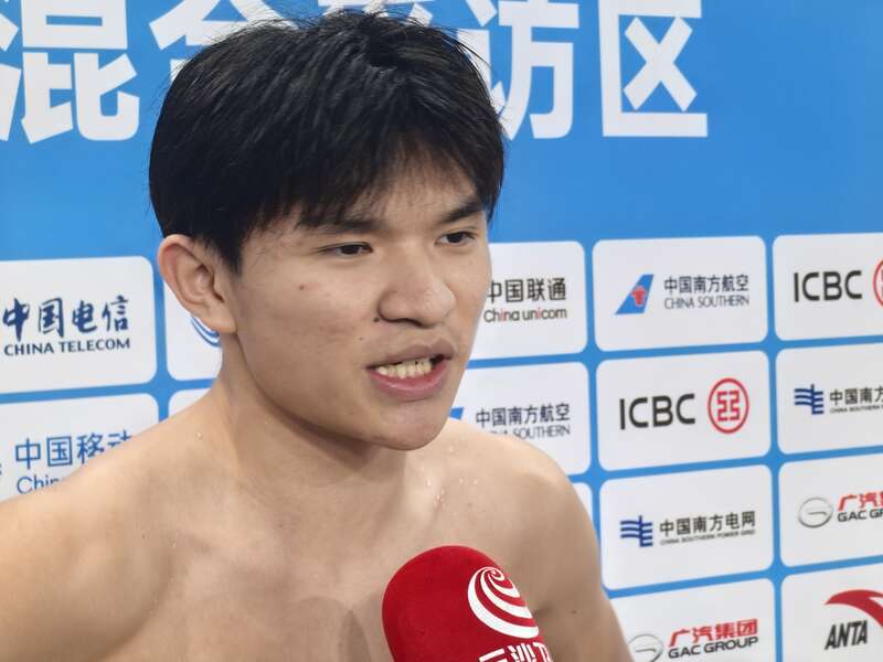 11月4日,广州,第十五届全运会跳水男子一米板比赛,澳门选手贺向荣接受采访。中青报·中青网记者慈鑫摄