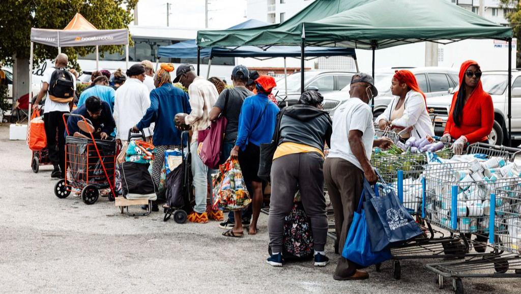美政府“停摆”持续 民众在食品银行领取救济粮