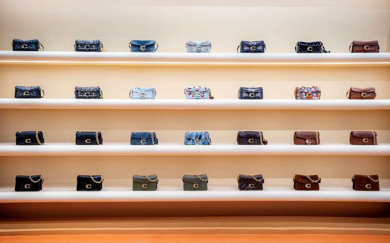 在消费品展区,泰佩思琦(Tapestry)集团旗下品牌蔻驰(COACH)连续第七年参加进博会,以“theCOACHtabbyshop”为主题,携标志性Tabby系列及20余款全球首发首展新品亮相,全面呈现品牌战略在中国的落地成果。蔻驰展台工作人员介绍了一款新品包袋,她说:“这款包袋采用遵循可持续发展理念的布艺牛仔水洗面料,手提带采用牛皮材质,抗磨性强,配上手工樱桃刺绣图案和樱桃包挂,符合Z世代年轻消费群体的喜好。”