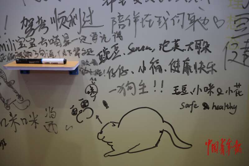 11月7日,上海国家会展中心,第八届中国国际进口博览会消费品展区,宠物留言板上写着许多主人对宠物的寄语。中青报·中青网记者 孔斯琪/摄