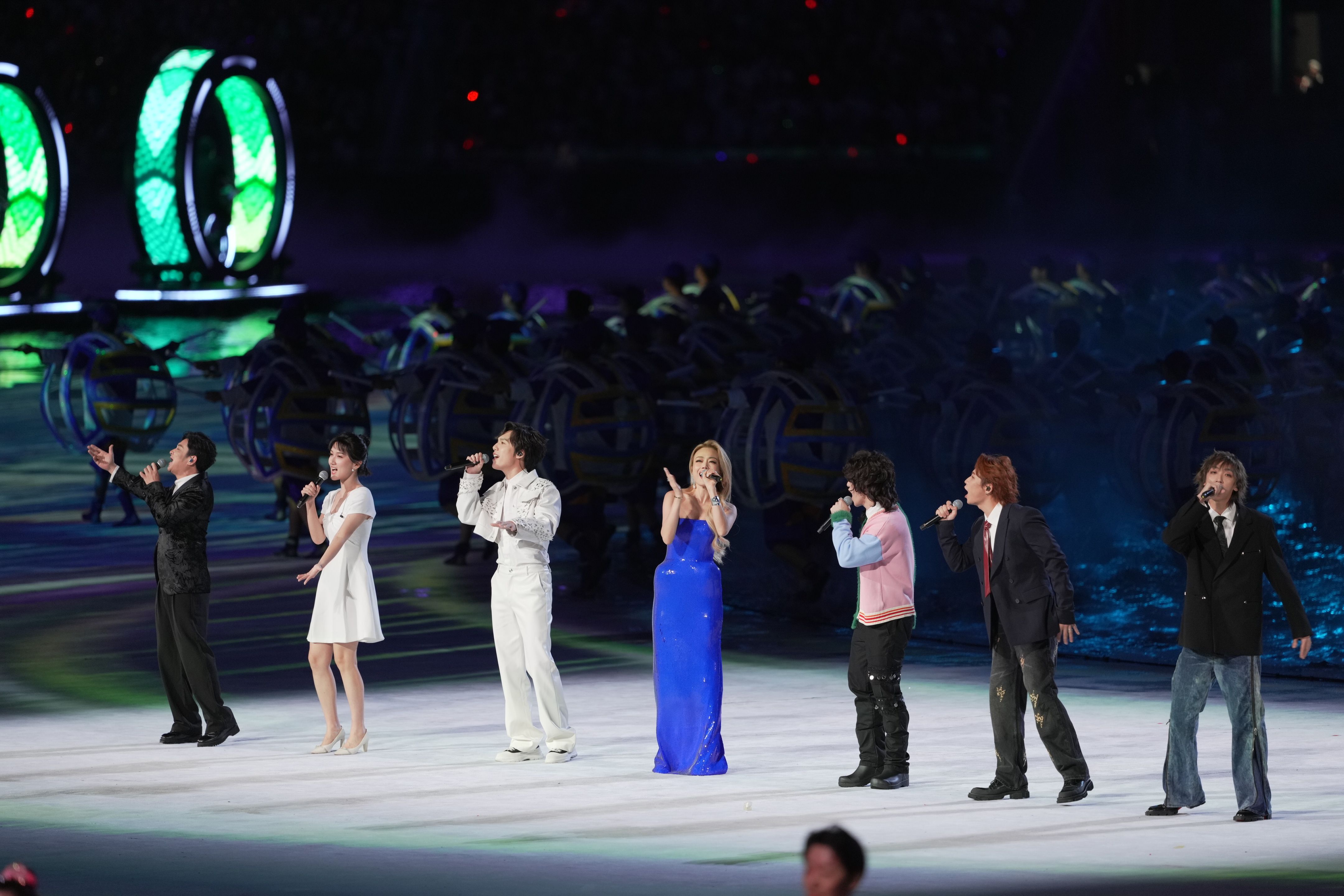 在《中国人》之前,容祖儿、曾比特、刘乃奇、郑宗健、李肇航共同演绎歌曲《龙腾伶仃洋》,陈小春、谢天华、林晓峰、钱嘉乐唱响话语经典歌曲《海阔天空》,同样引发观众共鸣。