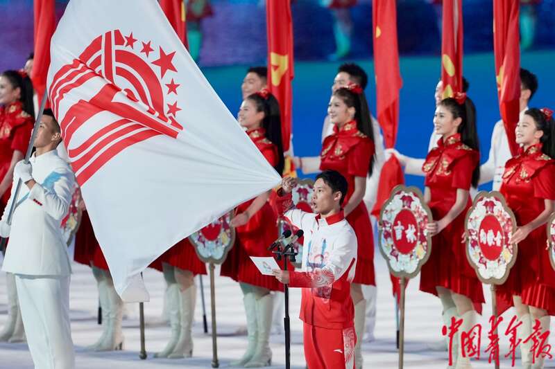 在运动员、教练员、裁判员代表宣誓环节,跳水名将、奥运冠军陈艾森作为运动员代表领誓。在2016年里约奥运会上,陈艾森获得了男子双人10米跳台、男子单人10米跳台冠军,是奥运历史上第一位在男子跳水项目上,同时收获男子单人和双人10米跳台金牌的运动员。