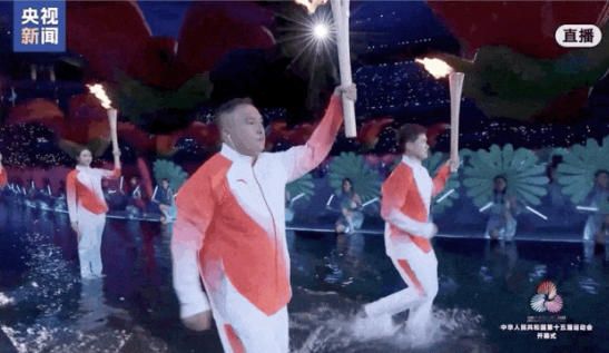 昨晚(9日),第十五届全国运动会在广东奥林匹克体育中心体育场盛大开幕。主火炬点燃仪式上,粤港澳三地的火炬手,手持圣火,踏浪而来。