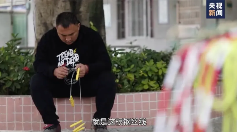 当时,学校没有钱,没有专用跳绳,他就自己动手做跳绳。一次偶然的机会,赖宣治到修车铺修摩托车,修理工拆下的一条刹车线引起了他的注意,“摩托车的刹车线软硬、粗细适中,是做跳绳再好不过的材料。”