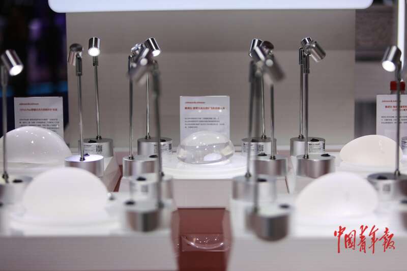 11月10日,上海国家会展中心,第八届中国国际进口博览会医疗器械及医疗保障展区,一家医疗科技公司展出的水滴型乳房植入体。中青报·中青网记者 孔斯琪/摄