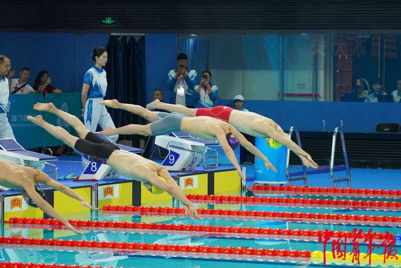 十五运会游泳项目在深圳大运中心游泳馆拉开战幕。在率先进行的男子400米自由泳项目中,出生于2007年的山东小将张展硕以3分42秒82创造新的亚洲青年纪录,夺得本届全运会游泳项目首金。徐海博获得亚军,费立纬拿到铜牌。名将潘展乐、孙杨位列第五位和第六位。