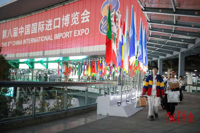 11月10日,上海国家会展中心,第八届中国国际进口博览会即将闭幕,人们陆续从会场走出。据介绍,今年进博会首次组织约5万名社会观众现场观展,近距离接触“进博好物”、感受“进博魅力”,有效汇聚展会人气,增强展商和观众互动,取得了良好效果。截至10日中午12时,本届进博会累计进场92.2万人次,同比增长8.2%,创历史新高。中青报·中青网记者 孔斯琪/摄