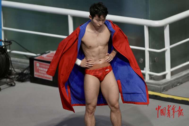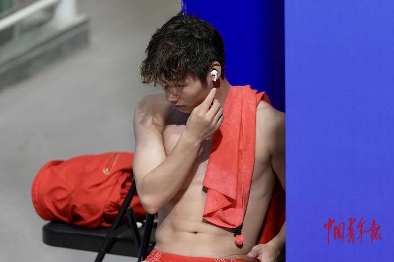 11月10日,广东广州,第十五届全运会男子3米跳板决赛,湖北队选手郑九源在休息区。中青报·中青网记者 李隽辉/摄