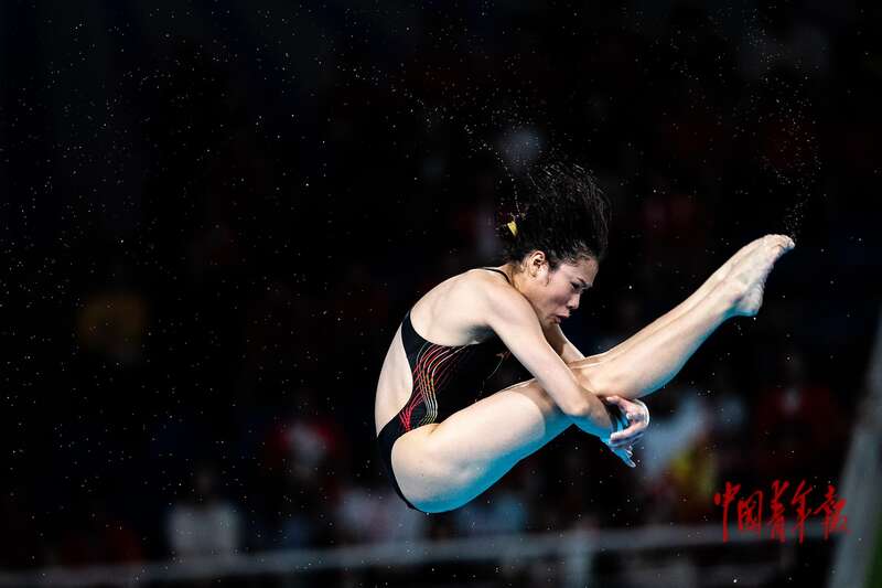 11月10日,广东广州,第十五届全国运动会女子单人10米跳台决赛,北京队选手张家齐在比赛中。中青报·中青网记者 李隽辉/摄