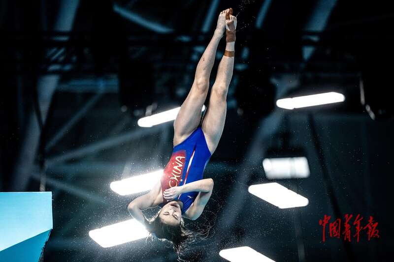 11月10日,广东广州,第十五届全国运动会女子单人10米跳台决赛前,陈芋汐在跳台练习。中青报·中青网记者 李隽辉/摄