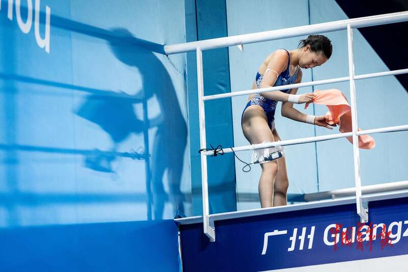11月10日,广东广州,第十五届全国运动会女子单人10米跳台决赛,陈芋汐在做赛前准备。中青报·中青网记者 李隽辉/摄