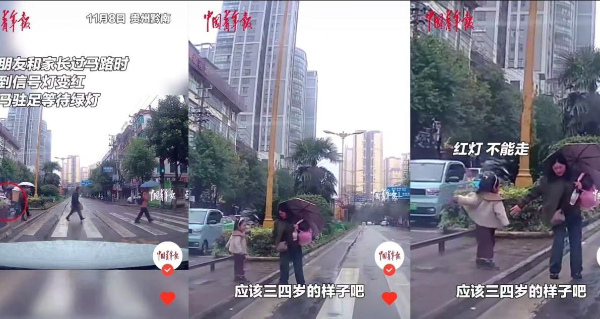 为这个倔强的小身影点赞!小女孩拒绝家长催促,坚持不闯红灯