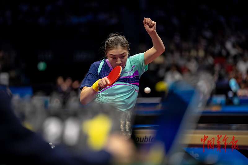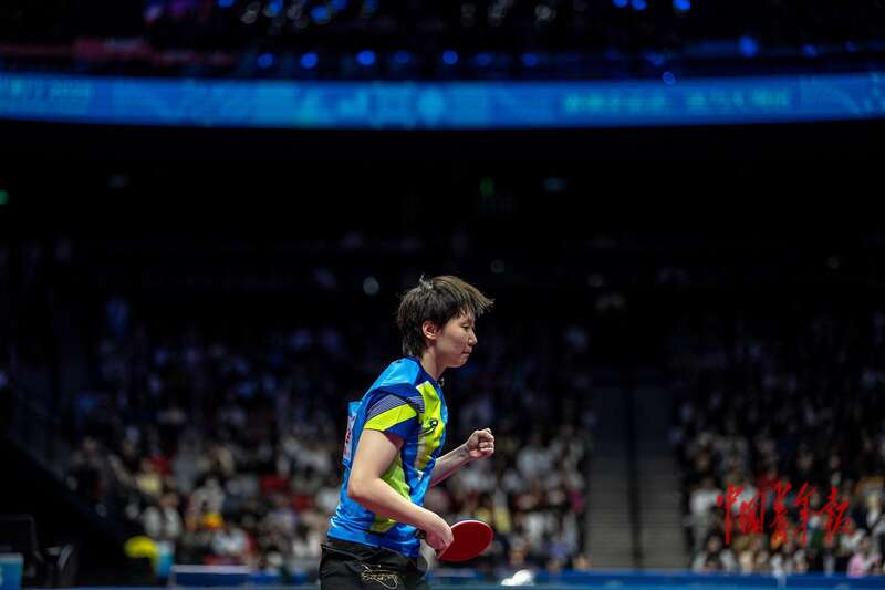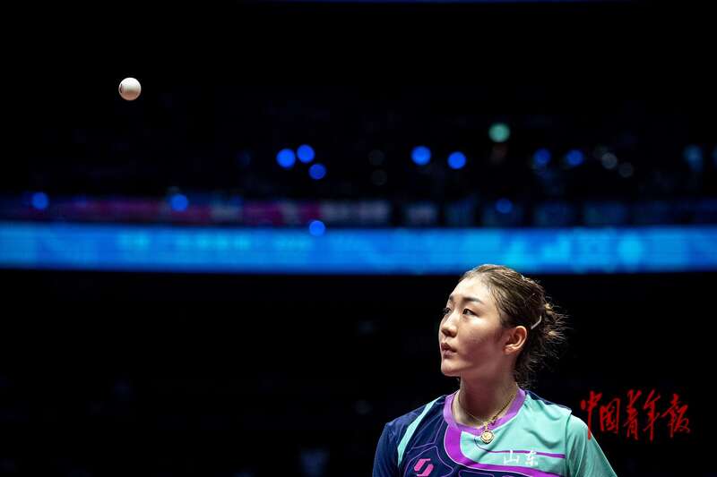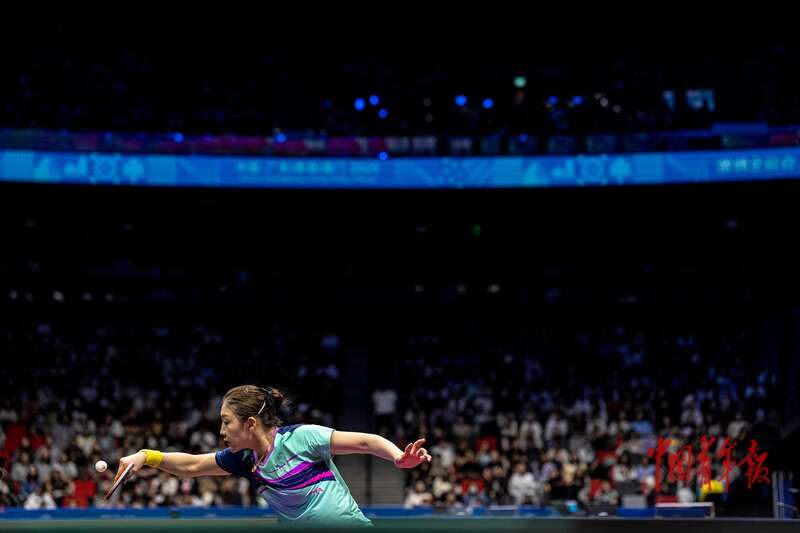 11月16日,澳门,第十五届全国运动会乒乓球女子单打决赛,黑龙江队选手王曼昱在比赛中。中青报·中青网记者 李隽辉/摄