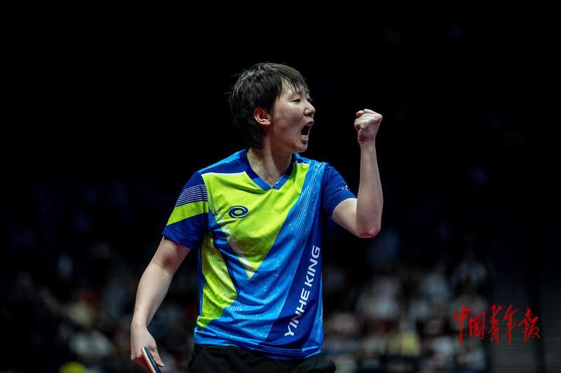 11月16日,澳门,第十五届全国运动会乒乓球女子单打决赛,黑龙江队选手王曼昱庆祝得分。决赛中,黑龙江队选手王曼昱4:2战胜河北队选手孙颖莎,获得冠军。铜牌赛中,山东队选手陈梦4:1战胜澳门队选手朱雨玲,摘得铜牌。中青报·中青网记者 李隽辉/摄