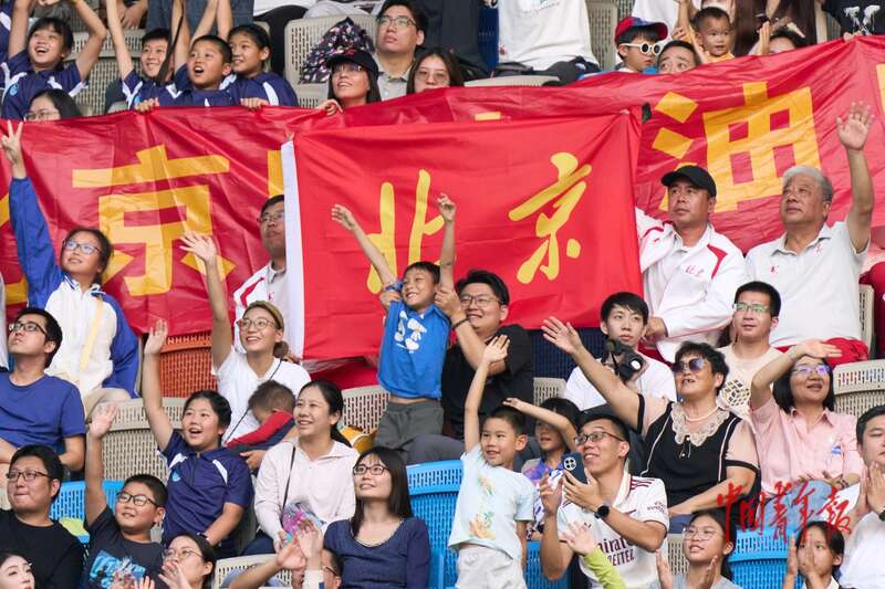 11月16日,广东深圳,深圳体育中心体育场,十五运会射箭女子反曲弓个人决赛铜牌决赛,观众们为比赛选手加油。中青报·中青网记者 田嘉硕/摄