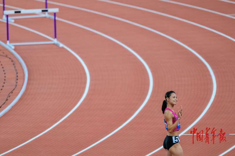 11月17日,广东广州,第十五届全国运动会田径女子400米跨栏决赛,广东队选手莫家蝶以54秒89的成绩获得冠军。中青报·中青网记者 李隽辉/摄