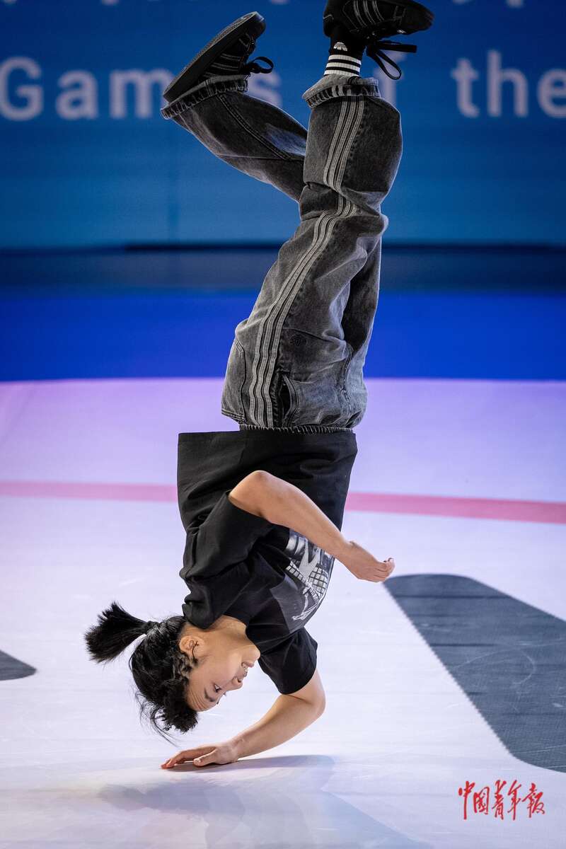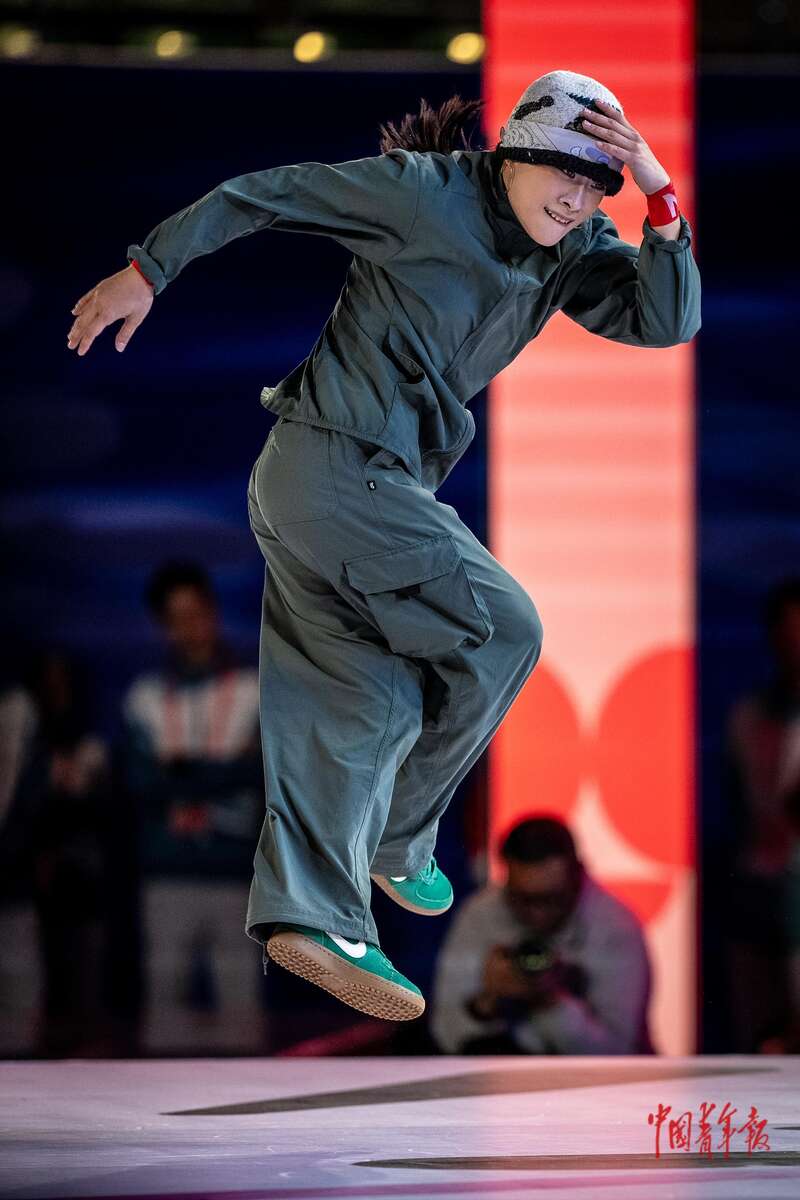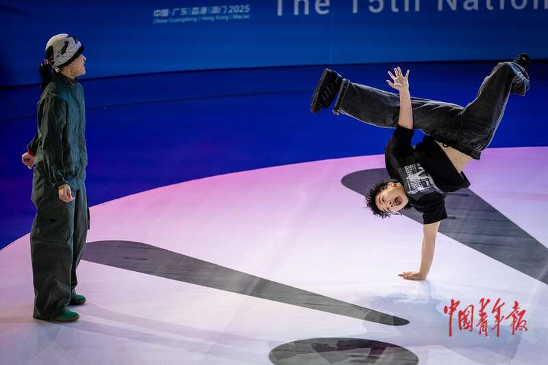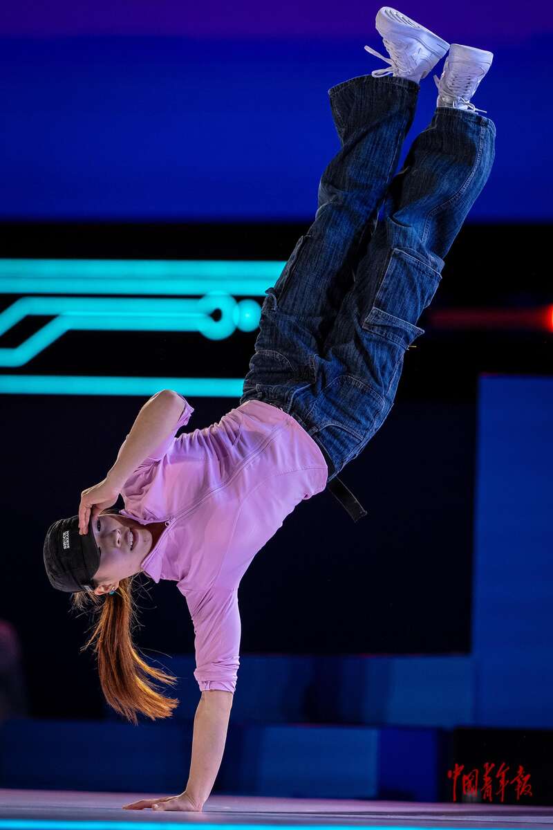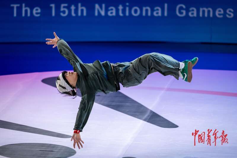 11月18日,广东广州,第十五届全国运动会霹雳舞女子组比赛,山东队郭朴在比赛中。中青报·中青网记者 李隽辉/摄