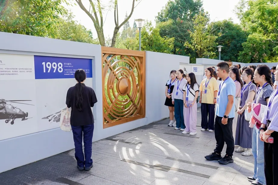 走进成飞航空主题教育基地,近距离观摩战斗机,学习了解中国航空事业发展历程和战斗机的研制流程。