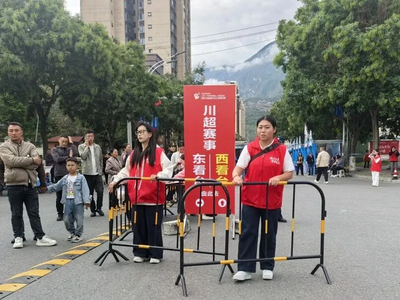 团宜宾市委联合宜宾市青年志愿者协会组织80名“宜小青”志愿者助力川超。“宜小青”明确岗位分工,引导排队、协助检票核验,筑牢外场秩序第一道防线。赛事期间,“宜小青”们迅速到岗,展开入场引导、秩序维护与应急处理等服务。